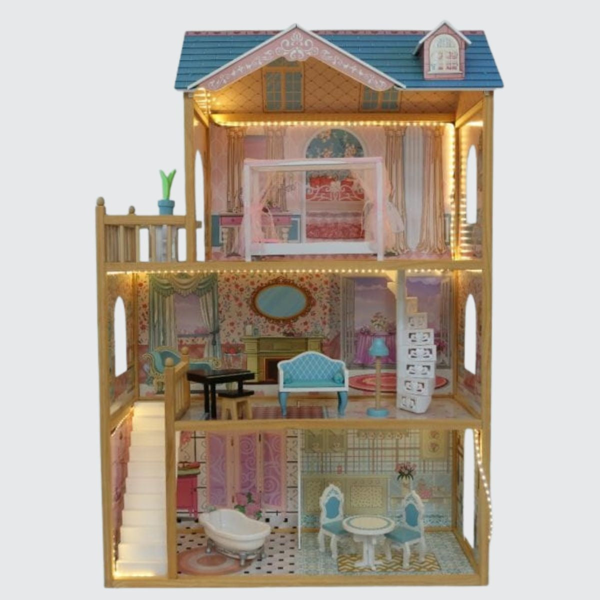 Het Gerardo’s Toys houten poppenhuis Emily met LED-verlichting brengt licht, verfijning en rust in de wereld van fantasierijk spel. Met drie verdiepingen, prachtig afgewerkte kamers en een sfeervol balkon nodigt dit poppenhuis kinderen uit om hun eigen verhalen te bouwen en te beleven. De warme LED-verlichting geeft elke kamer een levendige, huiselijke gloed.