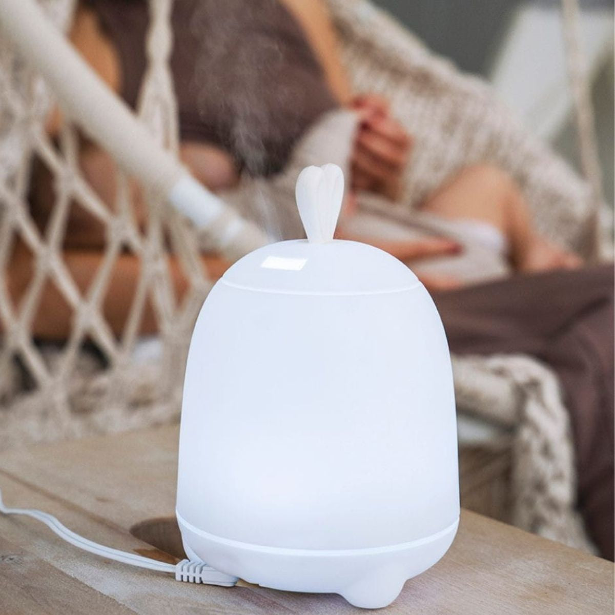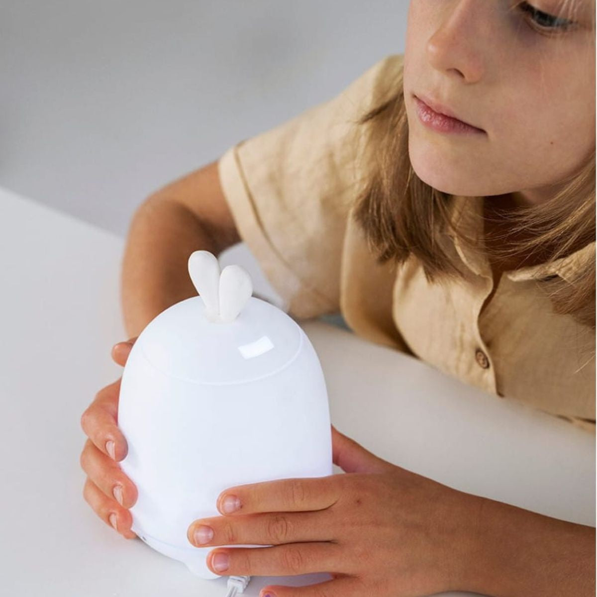 De Rabbit & Friends diffuserlamp met konijnenoren brengt zuivere lucht, zachte geur en een gevoel van rust in elke kinderkamer. Deze luchtbevochtiger met subtiele ledverlichting helpt een gezond binnenklimaat te behouden, ondersteunt een ontspannen nachtrust en vult de ruimte met een kalme sfeer. Ideaal voor ouders die het welzijn van hun kind willen omringen met zorg en zachtheid.