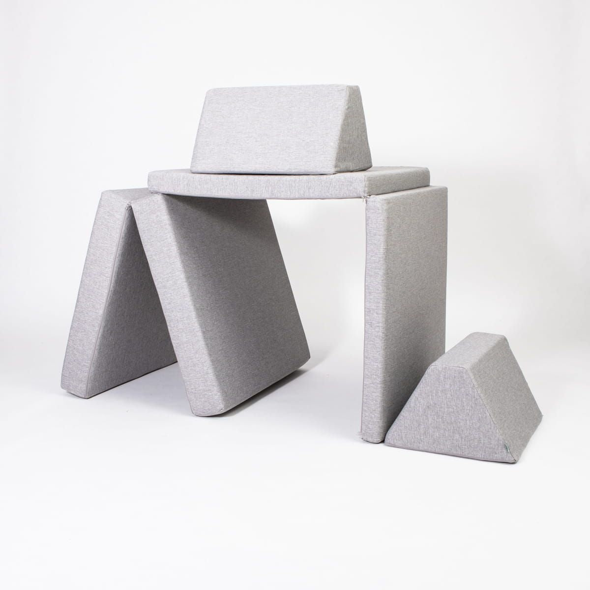 De set past zich aan elk moment aan: een bank om samen op te lezen, een logeerplek voor vriendjes of een bouwset vol fantasie. De grijze tint straalt pure eenvoud en natuurlijke balans uit, waardoor de speelset moeiteloos in elk Montessori- of Japandi-interieur past. Elk element is zacht, veilig en ontworpen met aandacht voor comfort en esthetiek.