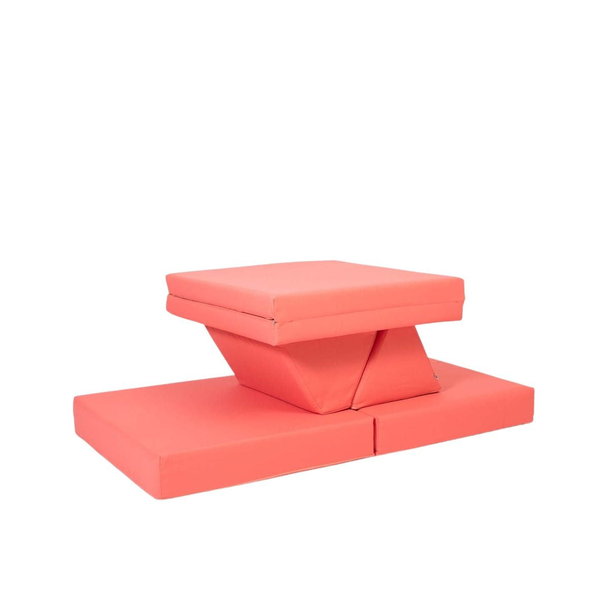 Of het nu een bank is om samen op te lezen, een matras om op te dromen of een bouwset vol verbeelding — de bank past zich moeiteloos aan aan elk moment van het spel. De zachte, duurzame stof en afgeronde vormen zorgen voor een veilige omgeving waarin kinderen zich vrij kunnen bewegen. De koraaltint brengt een gevoel van warmte en levendigheid, passend binnen een Montessori of Japandi-interieur.