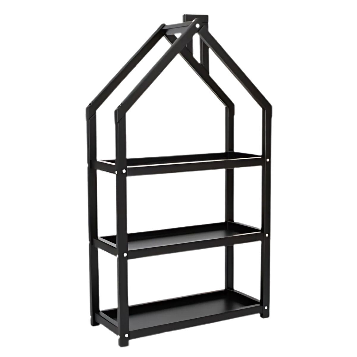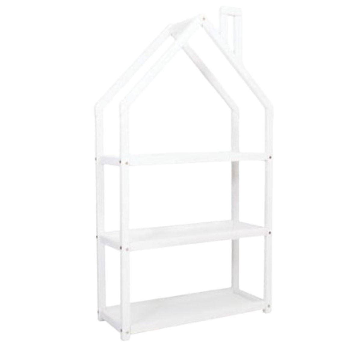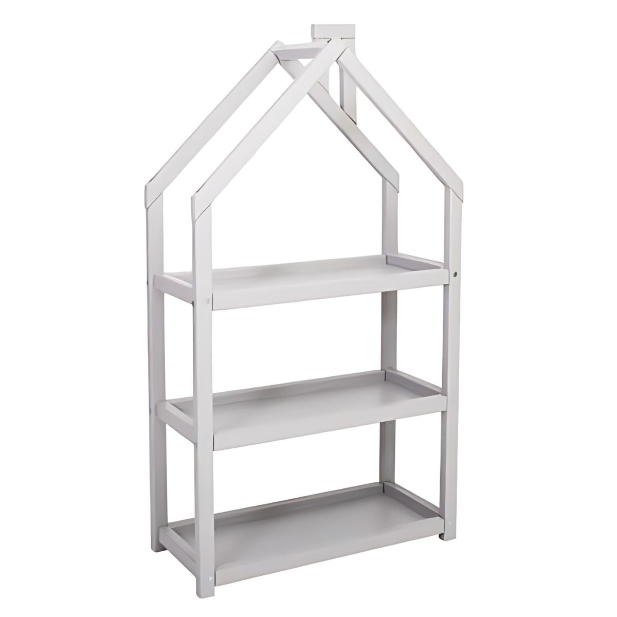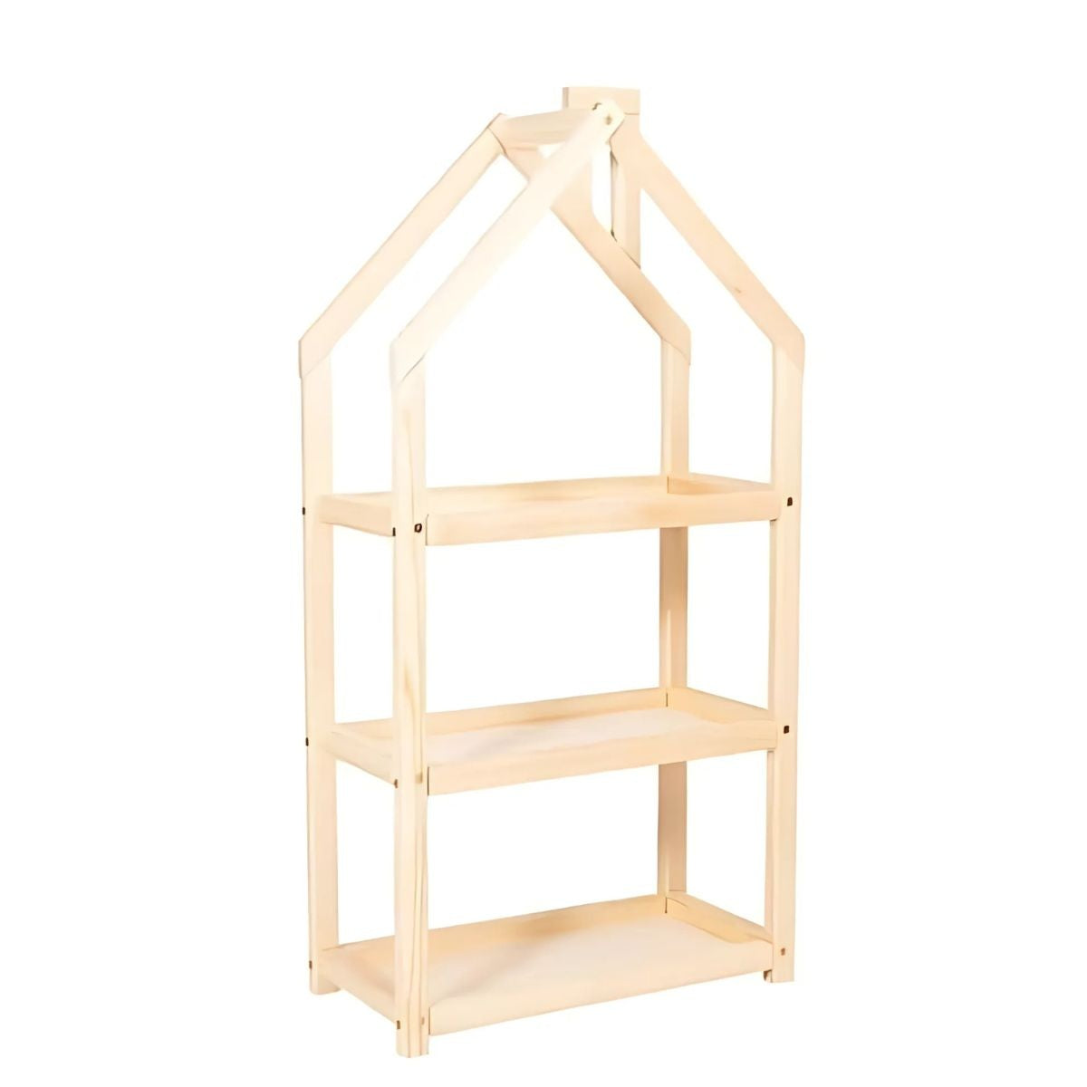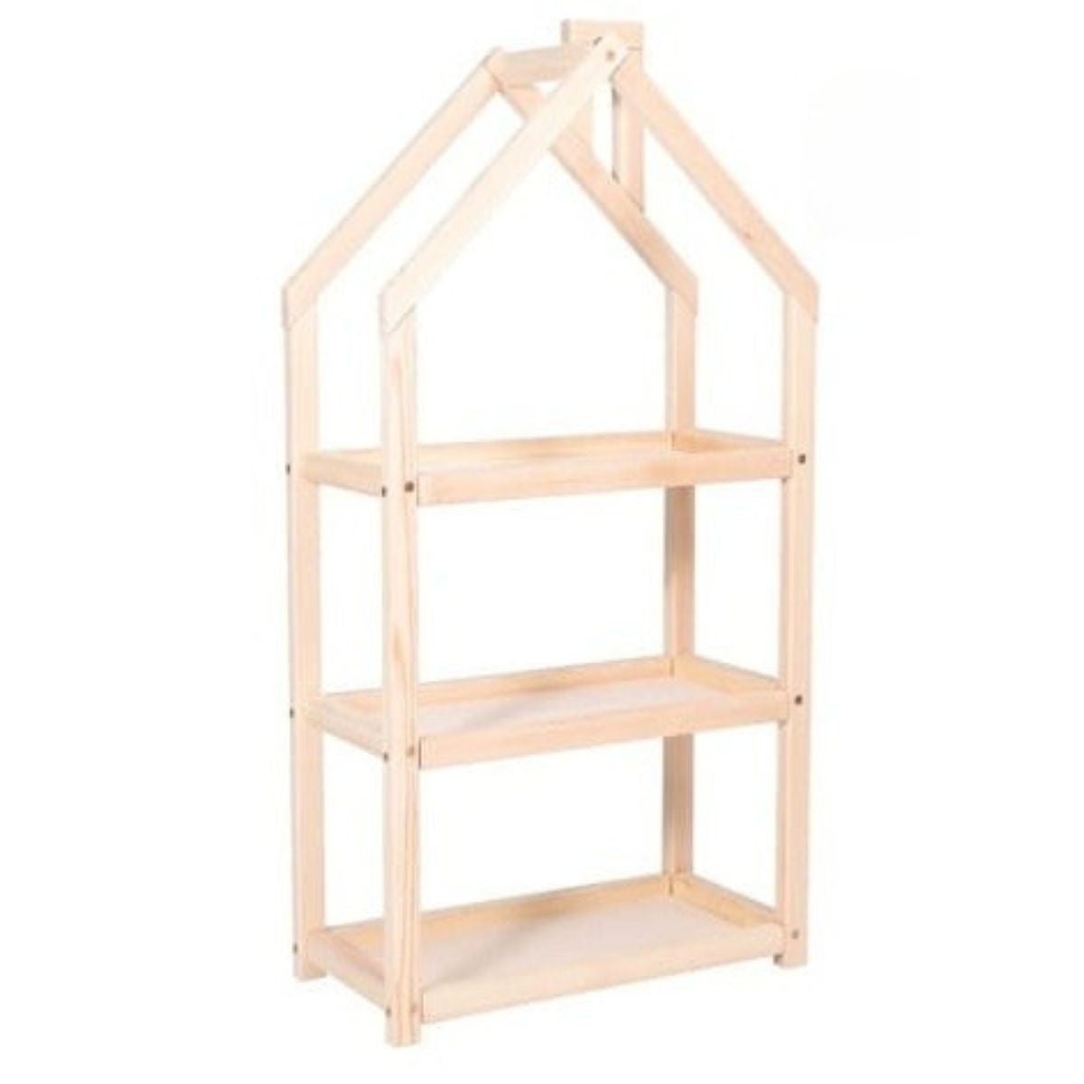 De plankenkast is even functioneel als uitnodigend. Of hij nu gevuld is met boeken, knuffels of bouwstenen, het open ontwerp moedigt peuters aan om hun wereld te organiseren en telkens opnieuw te verkennen. Dankzij de stevige constructie van massief hout blijft alles binnen handbereik, zonder dat het zijn charme verliest. De herkenbare huisvorm brengt een gevoel van geborgenheid en harmonie — een vertrouwd silhouet in de kamer van elk kind.