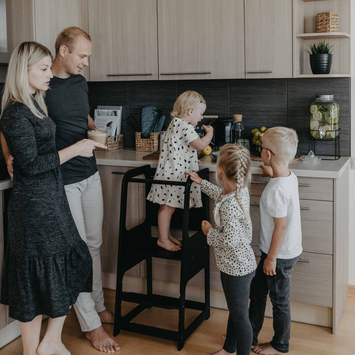 Met zijn natuurlijke uitstraling en speelse krijtbord brengt deze keukentoren rust in huis en zelfstandigheid in het kind. Ontworpen met liefde in Europa — gemaakt om jarenlang mee te groeien, te leren en te creëren met plezier en harmonie.
