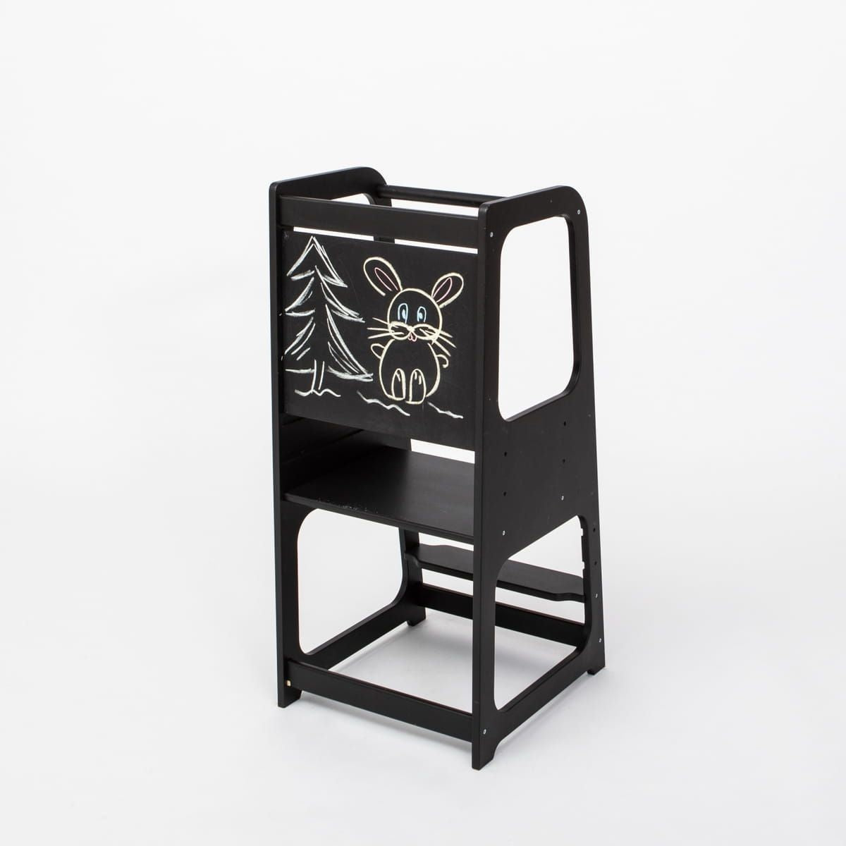 De toren nodigt peuters uit om deel te nemen aan dagelijkse rituelen in de keuken, terwijl het geïntegreerde krijtbord paneel ruimte geeft aan fantasie. Tekeningen, cijfers of kleine boodschappen — elke lijn is een uitdrukking van groei en plezier. De toren brengt rust in de drukte en vertrouwen in elke handeling, of het nu gaat om koken, spelen of tekenen.