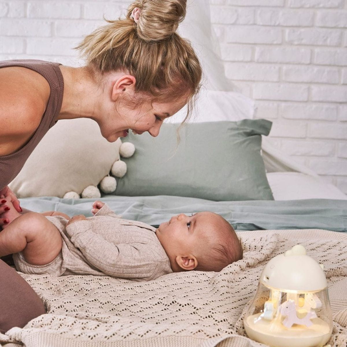 De combinatie van draaiende beweging, warme lichtkleuren en zachte muziek helpt kinderen ontspannen na een actieve dag. De lamp creëert een rustige overgang naar de slaap, versterkt het gevoel van veiligheid en maakt het naar bed gaan tot een fijn ritueel vol vertrouwen. Een prachtig cadeau voor ouders die een vleugje magie en rust willen toevoegen aan de kinderkamer.