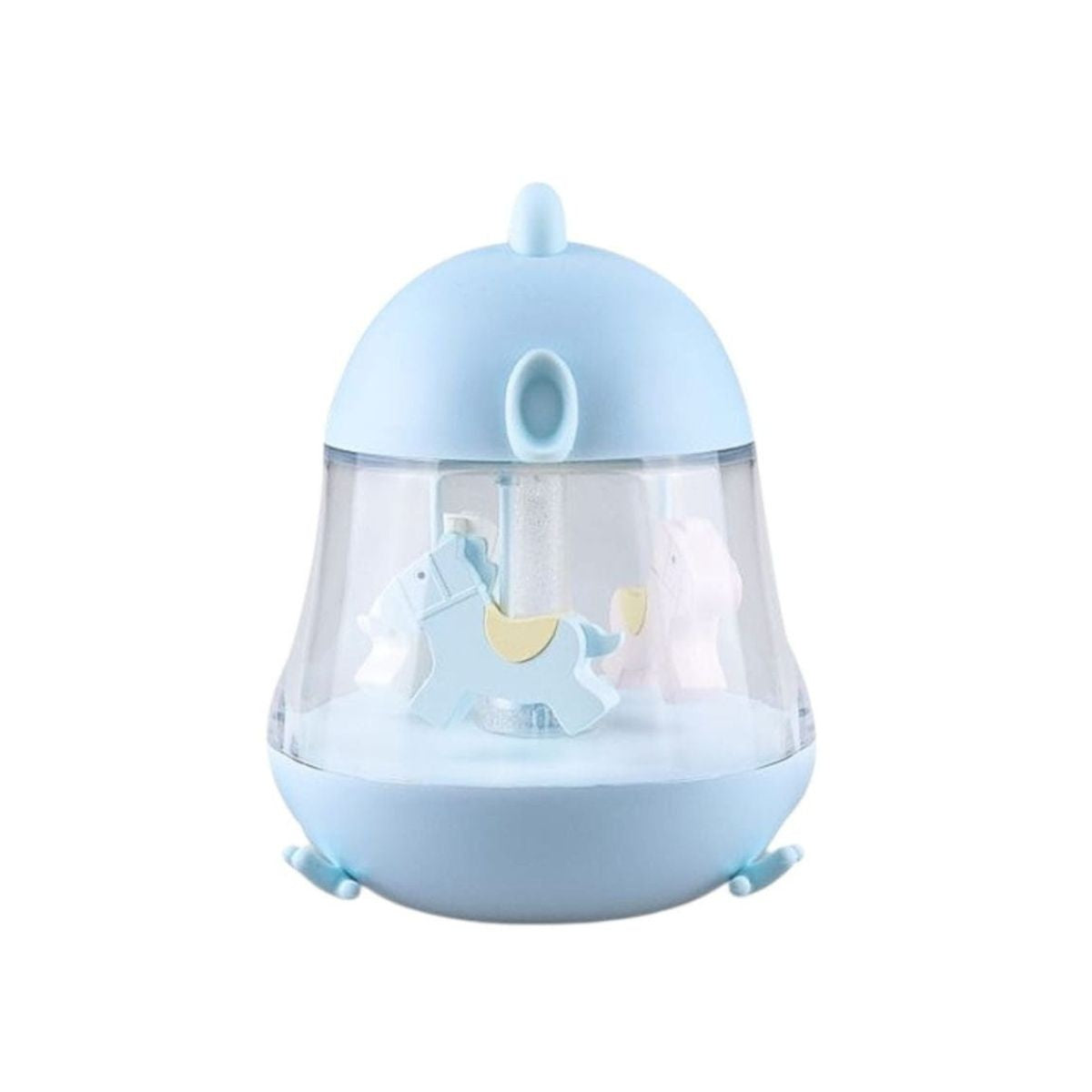 De Rabbit & Friends lamp met draaimolen en muziekdoosje in blauw brengt een gevoel van rust en verwondering in de kinderkamer. Overdag is ze een betoverende decoratie, ’s nachts een rustgevend nachtlampje dat licht en melodie samenbrengt. De ronddraaiende paarden en de zachte melodie helpen kinderen ontspannen, terwijl het warme licht de kamer een gevoel van geborgenheid geeft.