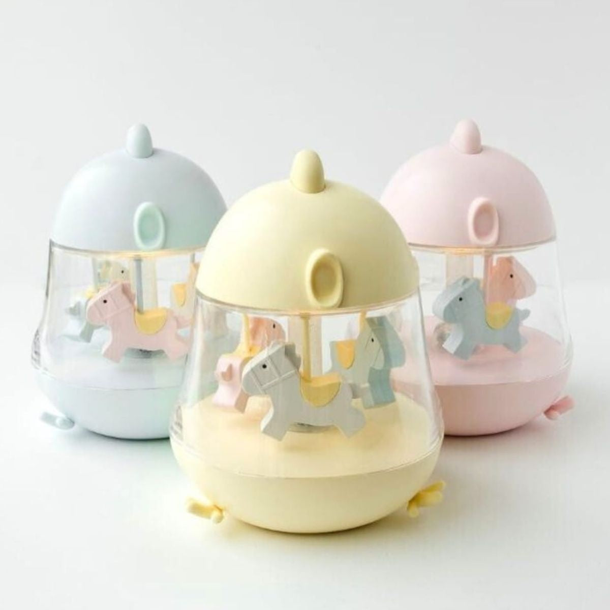 Met haar draaiende paarden, zachte kleuren en kalme muziek nodigt deze lamp uit tot dromen en ontspanning. Ze helpt kinderen tot rust te komen en maakt de overgang van dag naar nacht stabiel en vertrouwd. Een kleine, poëtische toevoeging aan het avondritueel — vol licht, muziek en zachtheid.