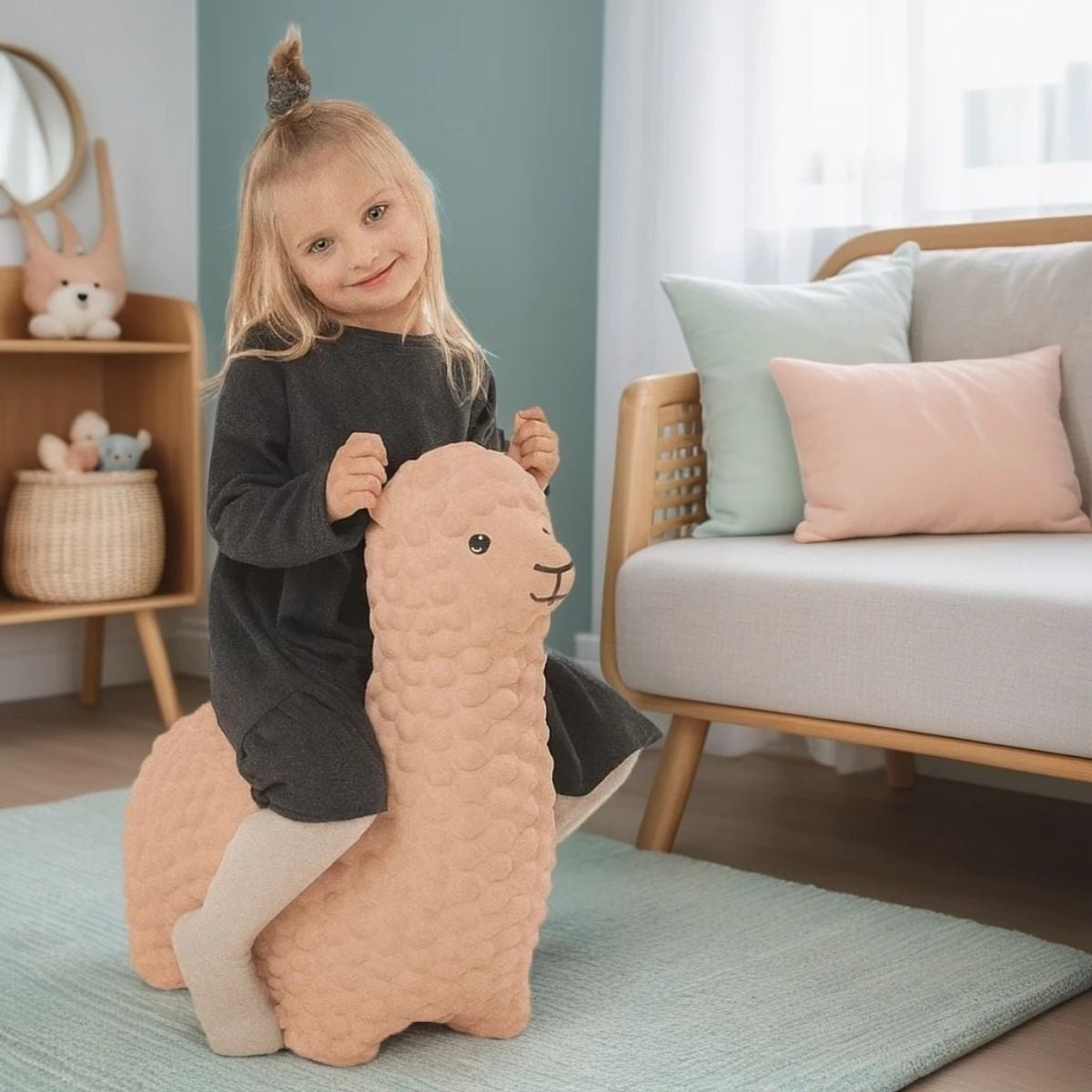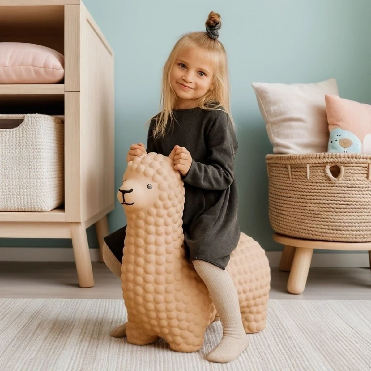 De ronde vormen van de beige springalpaca maken hem veilig en comfortabel voor jongere kinderen. Het sterke, antislipmateriaal zorgt voor stabiliteit en vertrouwen bij elke sprong — binnen of buiten. De zachte tint past in elk interieur en brengt een gevoel van natuurlijke harmonie.