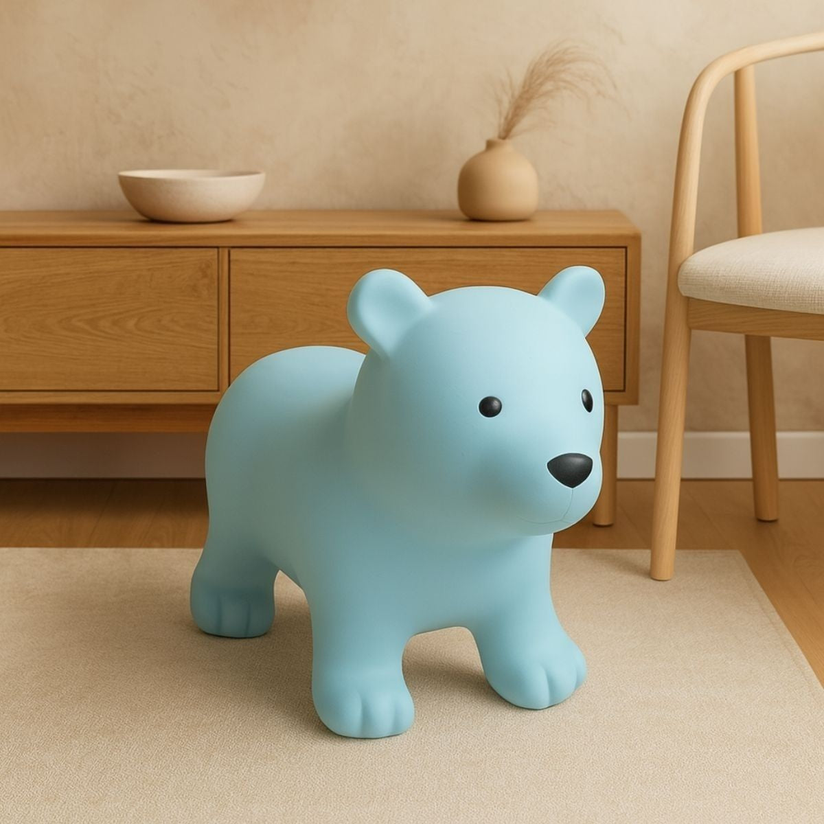 De blauwe springbeer uit de My First Jumpy-collectie straalt kalmte en helderheid uit. De zachte, blauwe tint brengt evenwicht en nodigt kinderen uit tot rustige, ritmische bewegingen. Elke sprong voelt licht en veilig, een oefening in balans en blijdschap tegelijk.