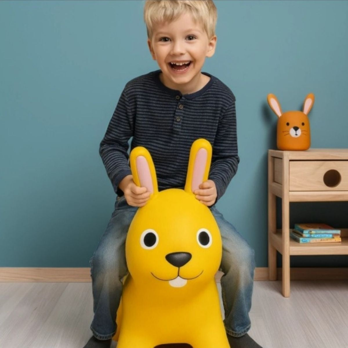 Het stevige, zachte ontwerp van het gele springkonijn zorgt voor stabiliteit en comfort, zowel binnen als buiten. Het veilige antislipmateriaal houdt het spel ontspannen en natuurlijk. De heldere kleur wekt enthousiasme op, terwijl het ritmische springen rust en evenwicht brengt in hoofd en hart.