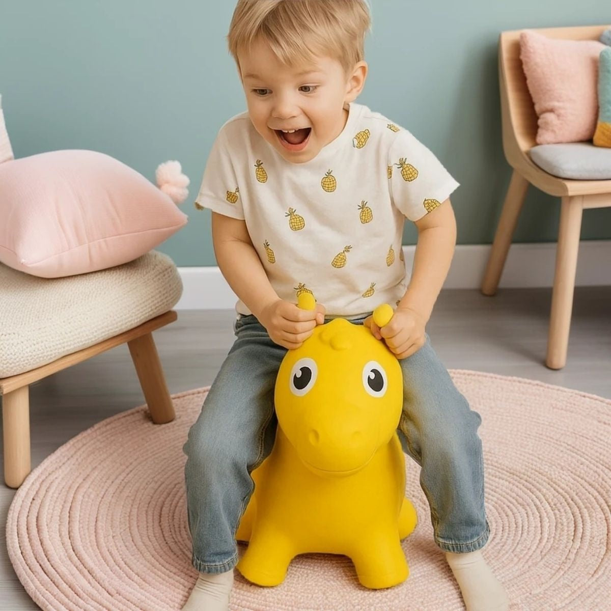 Het gele springpaard versterkt motoriek, evenwicht en zelfvertrouwen. Door te bewegen ontdekken kinderen hun ritme, kracht en lichaam. Elke sprong bevordert coördinatie én plezier — een speelse manier van leren die warmte, energie en rust combineert.