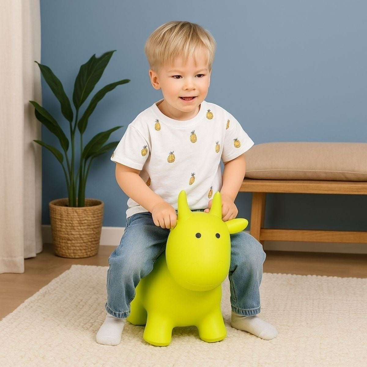 De groene springkoe uit de My First Jumpy-collectie ademt levendigheid en rust tegelijk. De frisse tint brengt een vleugje natuur in huis en nodigt kinderen uit om vrij te bewegen, te ontdekken en te groeien. Elke sprong voelt licht, vrolijk en vol balans.