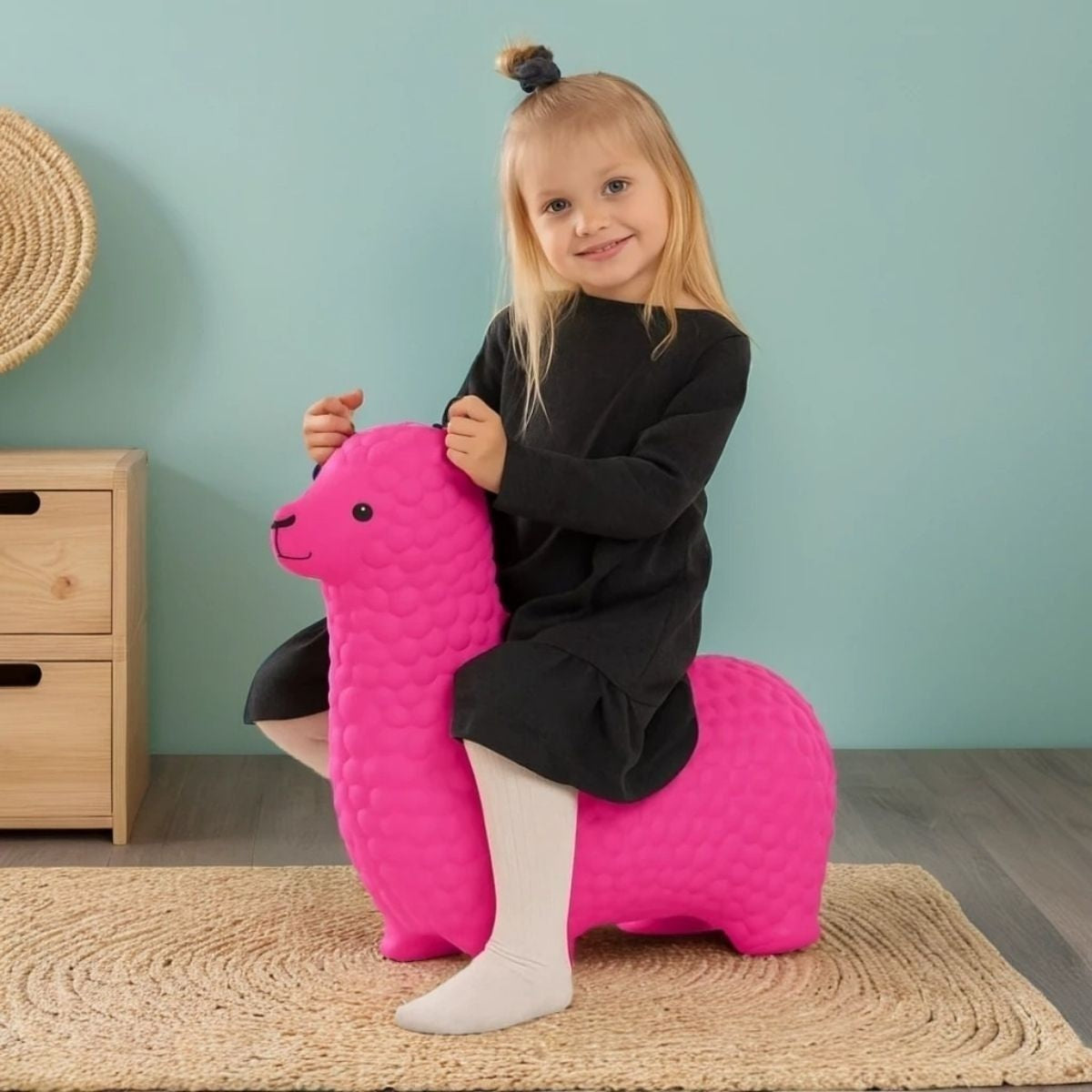 De roze springalpaca ondersteunt kinderen in hun balans, kracht en motoriek. Het ritme van het springen brengt ontspanning, stimuleert coördinatie en versterkt het zelfvertrouwen. De kleur straalt zachtheid en vreugde uit — een gevoel dat meegroeit met elk sprongetje.