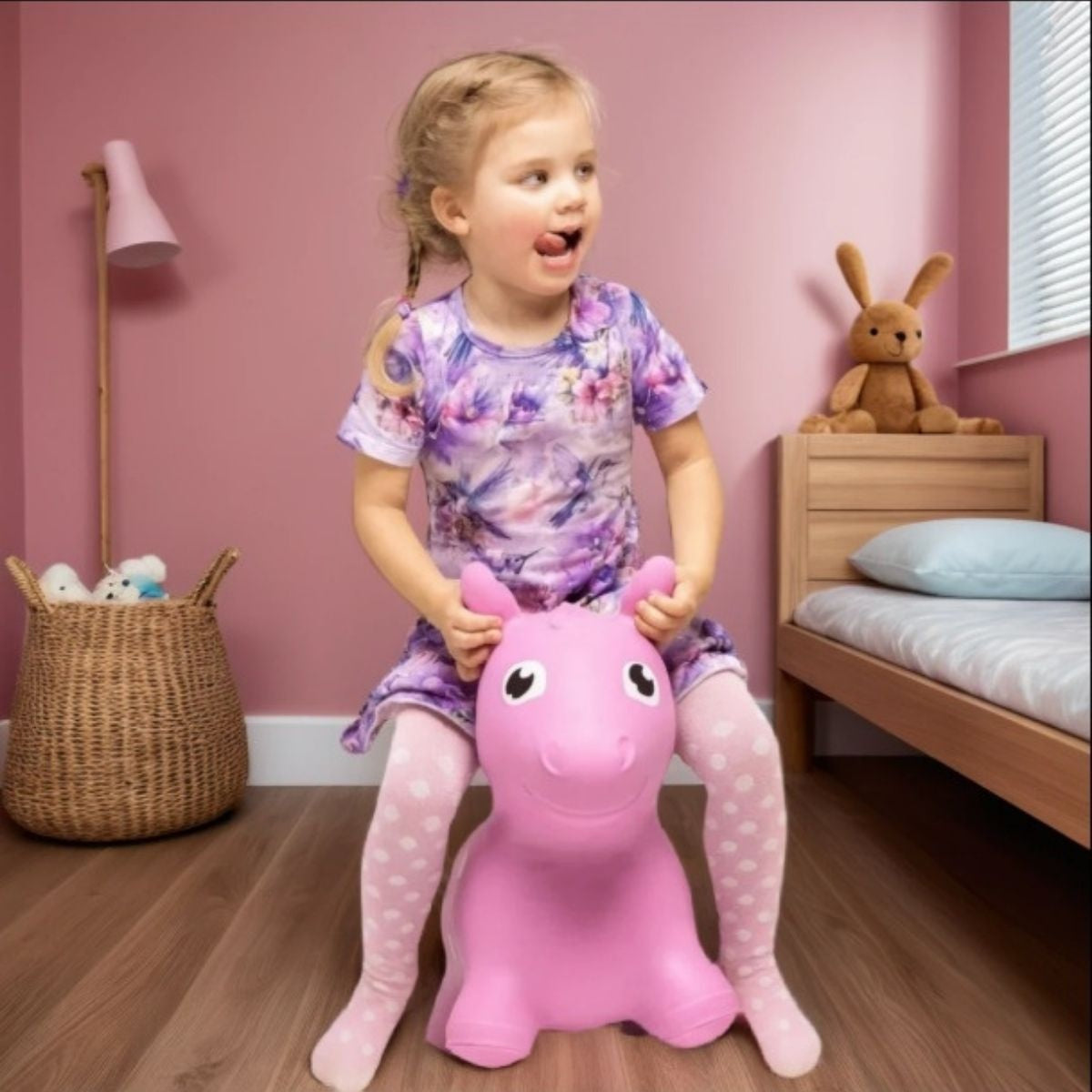 Het roze springpaard bevordert balans, coördinatie en spierkracht. Door ritmisch te bewegen ontdekken kinderen hun lichaam en evenwicht. Het vrije spel stimuleert creativiteit, rust en zelfvertrouwen — elke sprong brengt een glimlach en een gevoel van harmonie.