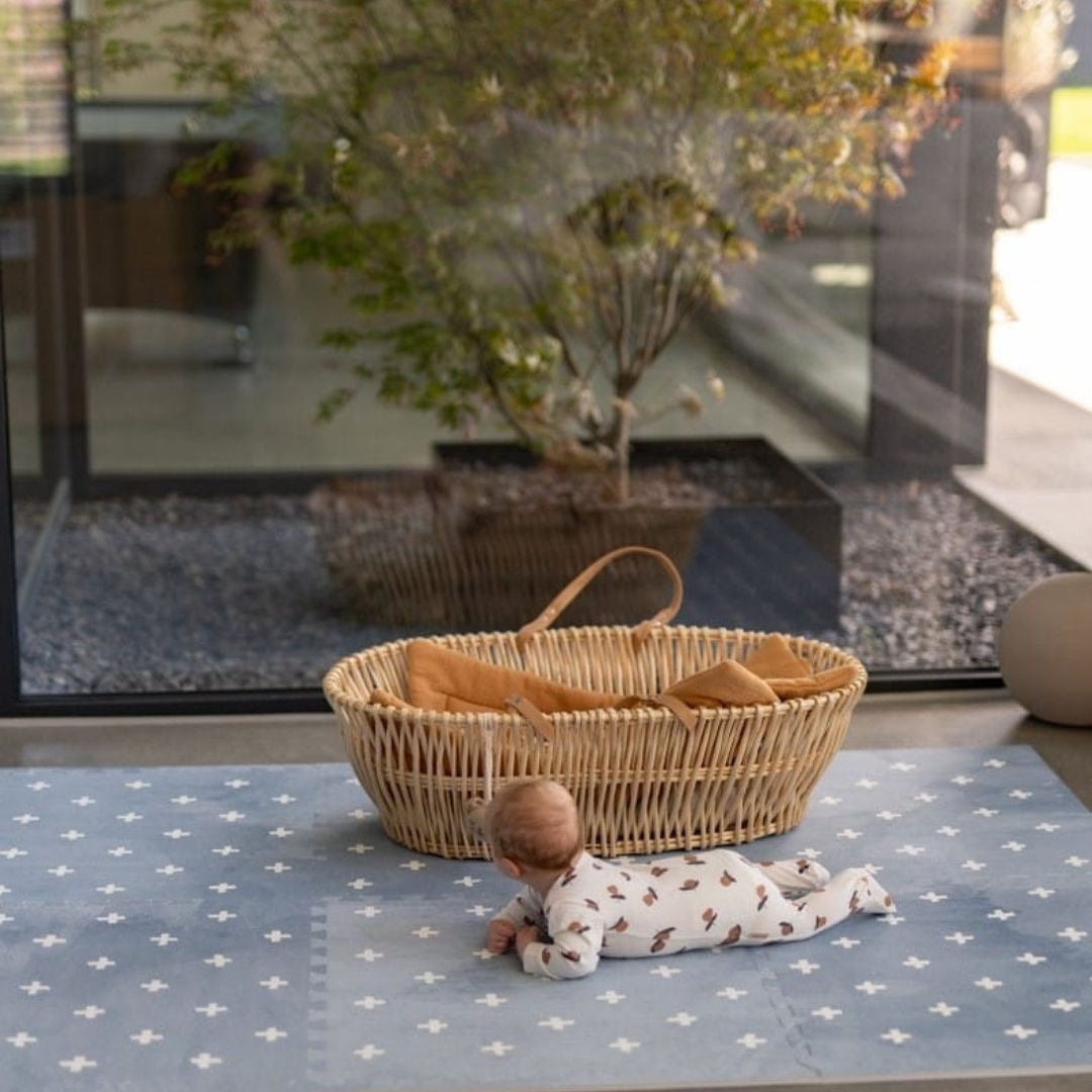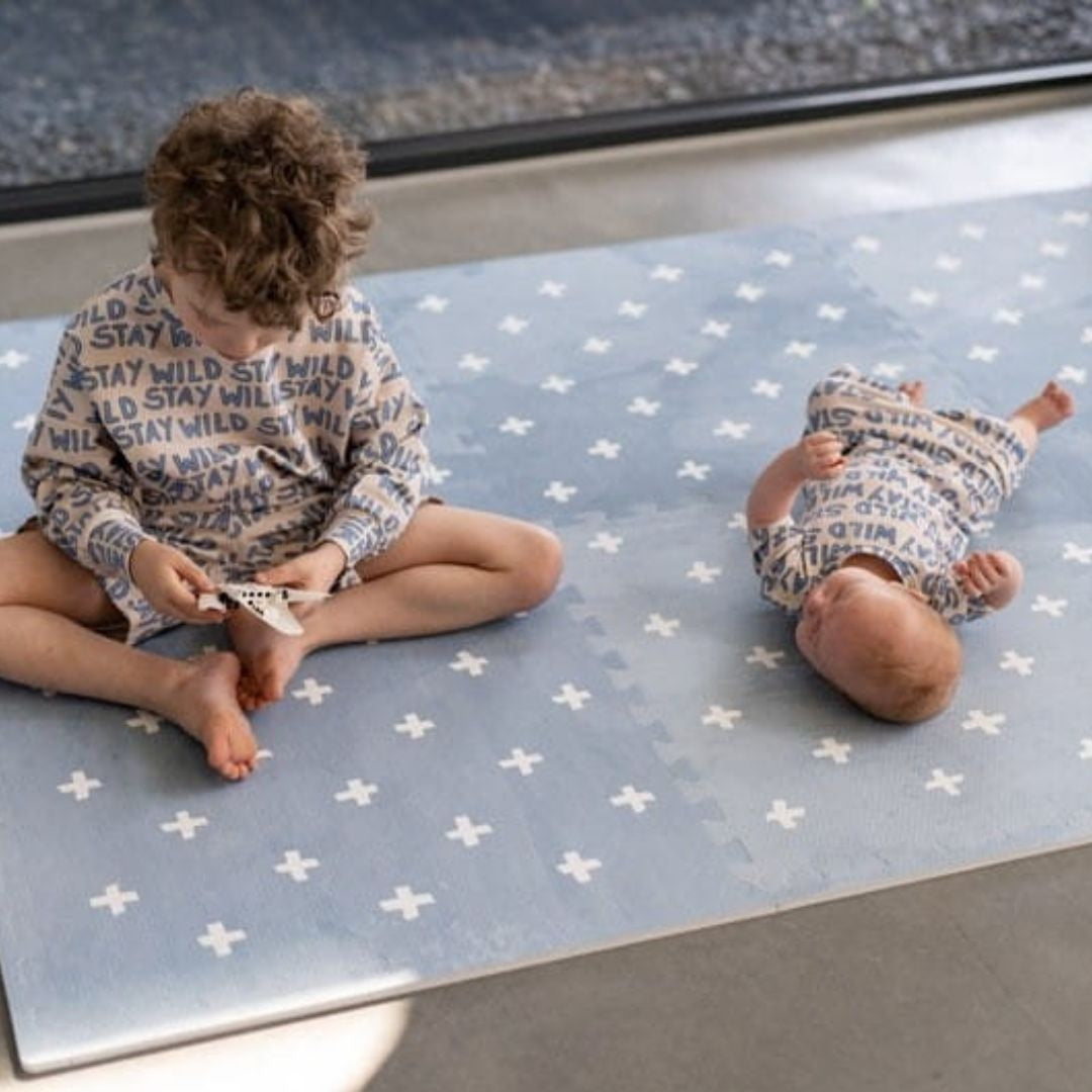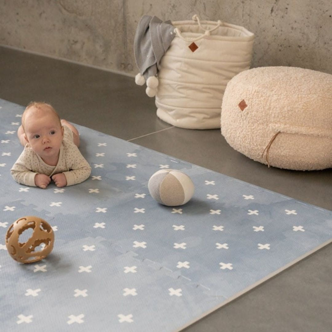De OLYA KIDS “Cross Azure” speelmat brengt frisse zachtheid in huis. De lichtblauwe tint en het minimalistische kruispatroon zorgen voor een rustige uitstraling, terwijl het zachte oppervlak een veilige plek vormt waar je baby kan spelen, kruipen en ontdekken.
