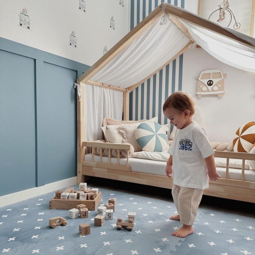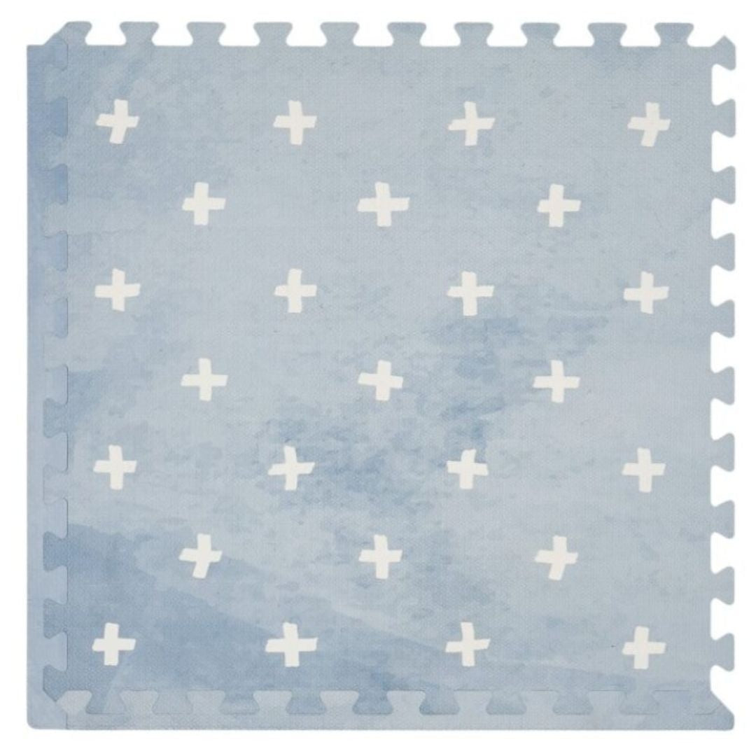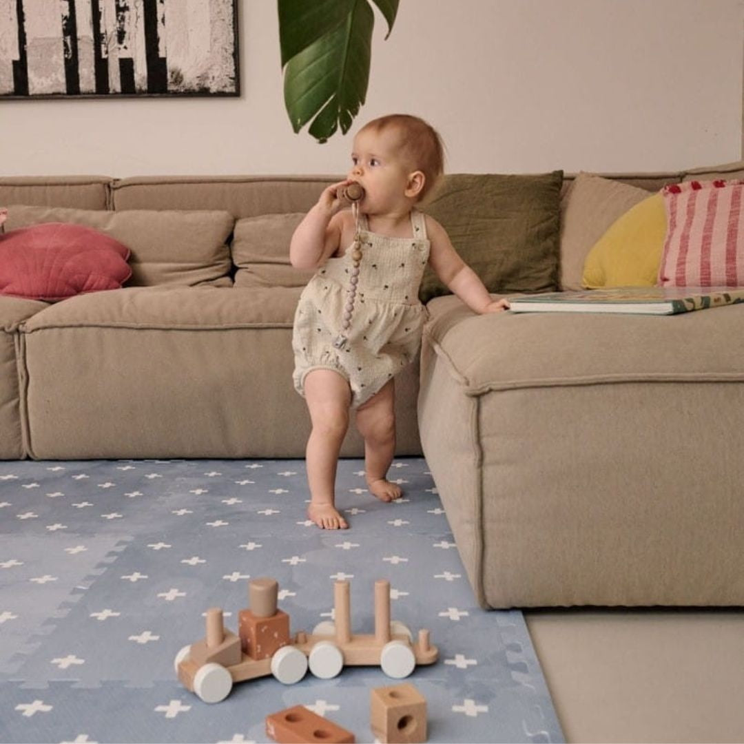 De OLYA KIDS “Cross Azure” speelmat brengt frisse zachtheid in huis. De lichtblauwe tint en het minimalistische kruispatroon zorgen voor een rustige uitstraling, terwijl het zachte oppervlak een veilige plek vormt waar je baby kan spelen, kruipen en ontdekken.