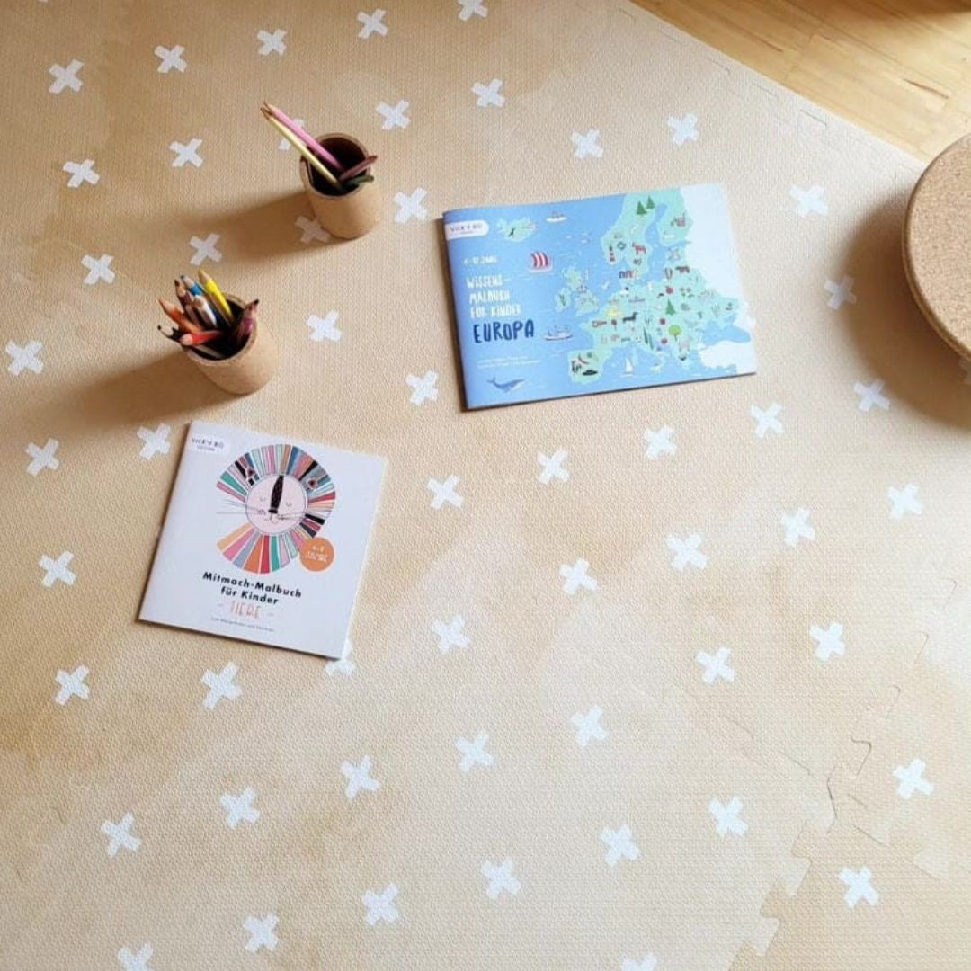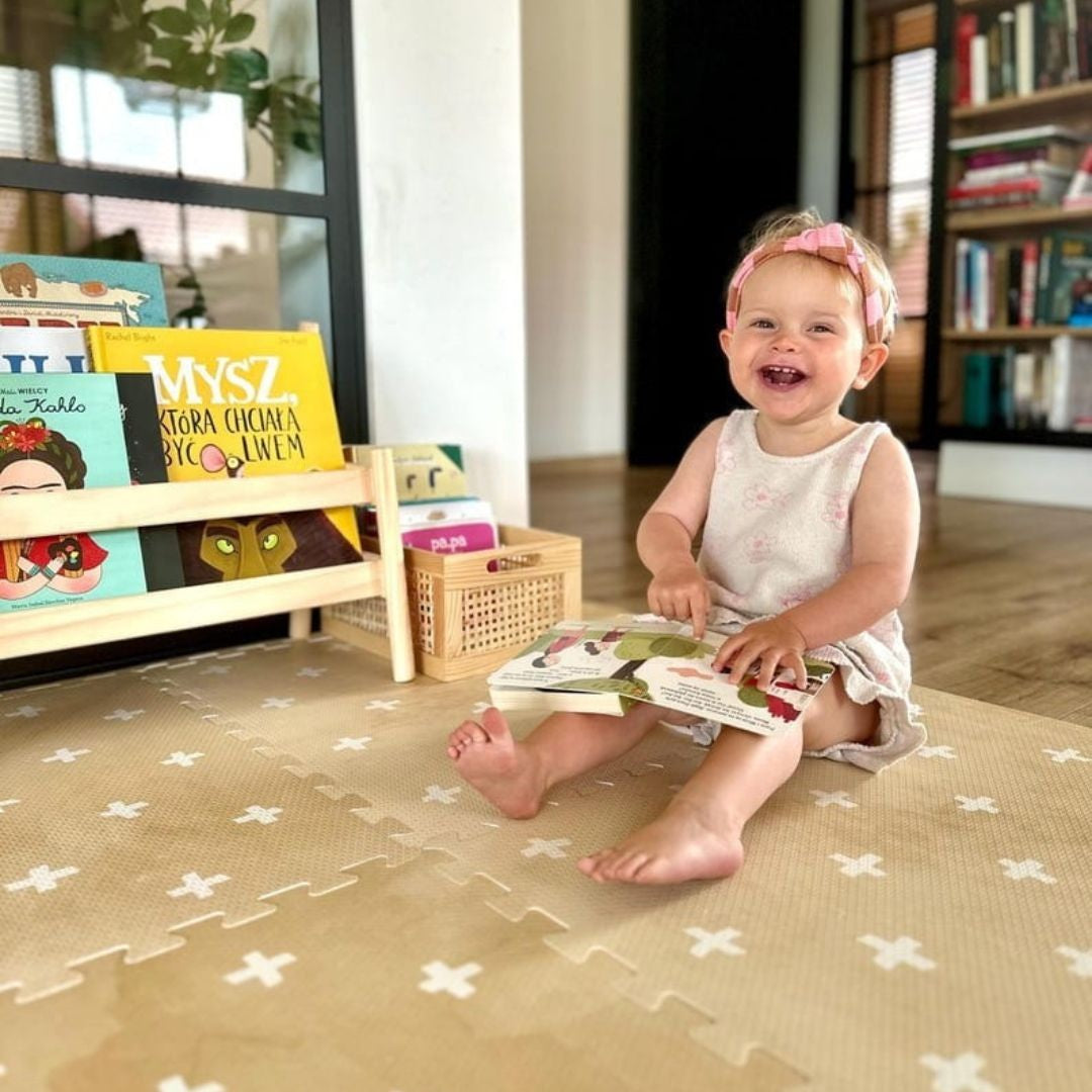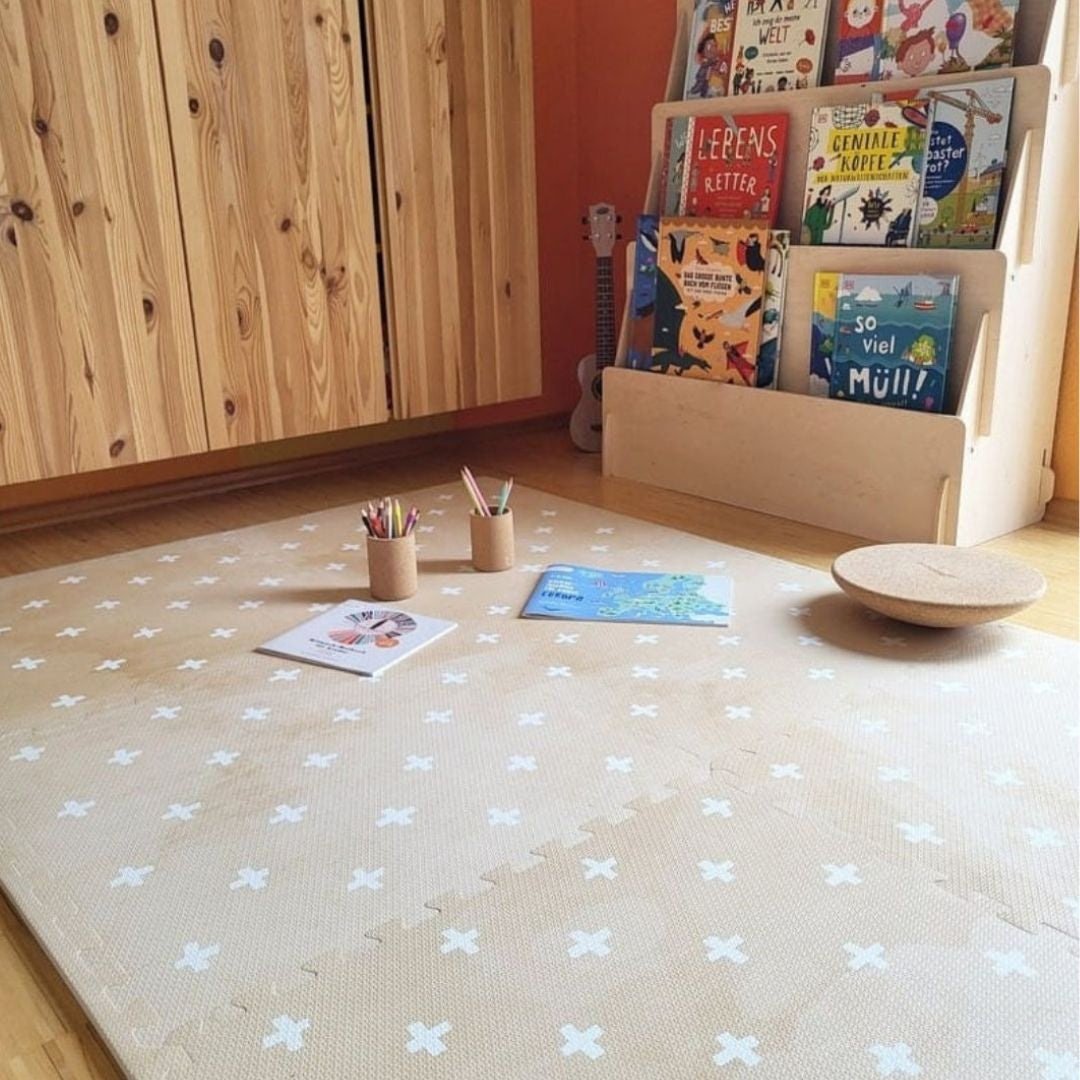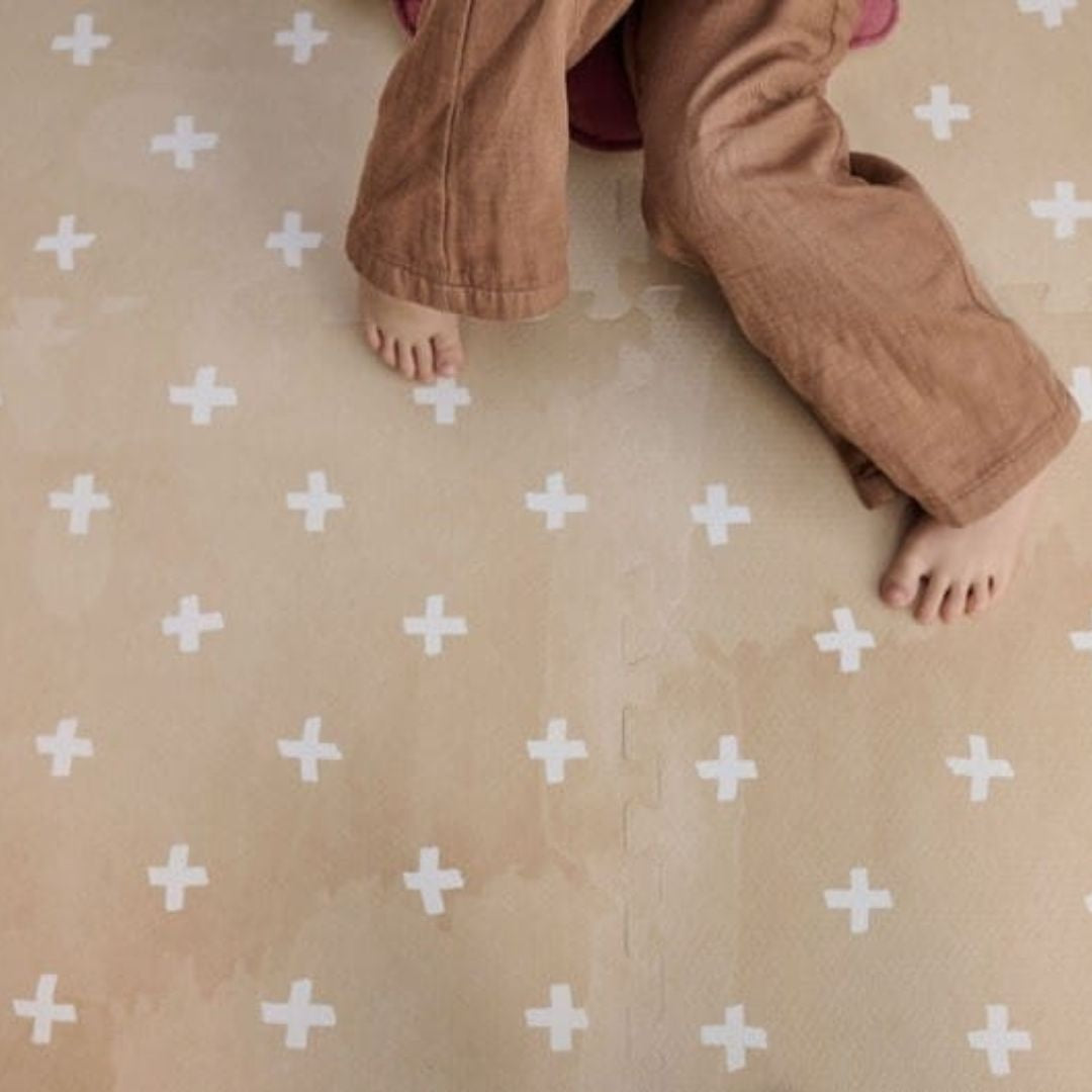 De OLYA KIDS “Cross Sand” speelmat brengt rust in huis met haar zachte zandkleur en minimalistische kruispatroon. Een veilige, comfortabele ondergrond waar je baby kan kruipen, rollen en ontdekken – zonder harde vloeren of koude tegels.