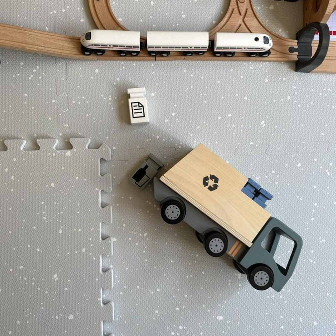 De natuurlijke kleuren versmelten moeiteloos met zowel lichte als warme interieurs. Het zachte EVA-schuim dempt elke beweging, waardoor het geluid van rollende blokken, vrolijk brabbelen en eerste stapjes zachtjes wegvalt in de achtergrond. Ideaal voor rustige ochtenden en knusse speelmomenten.