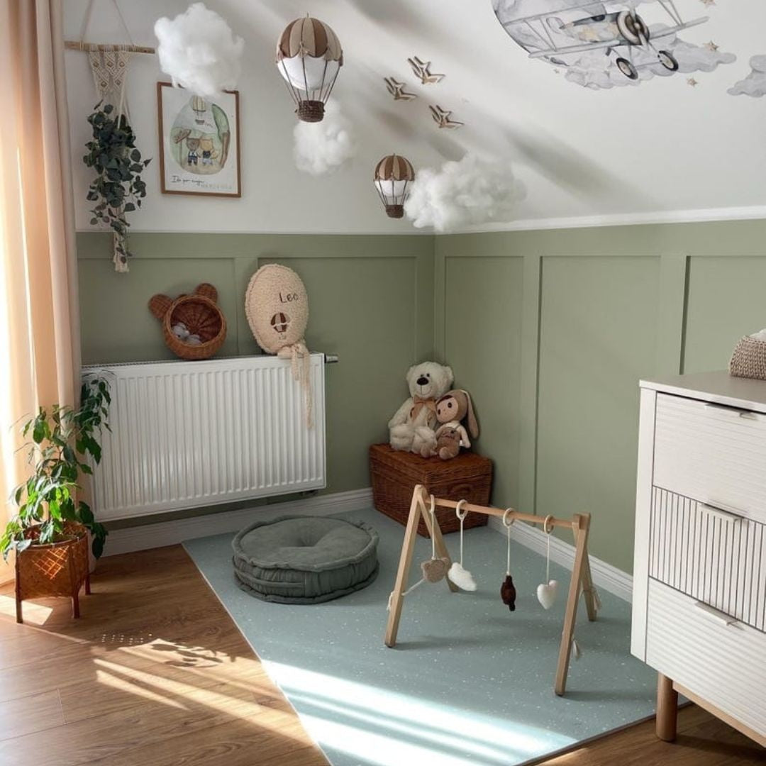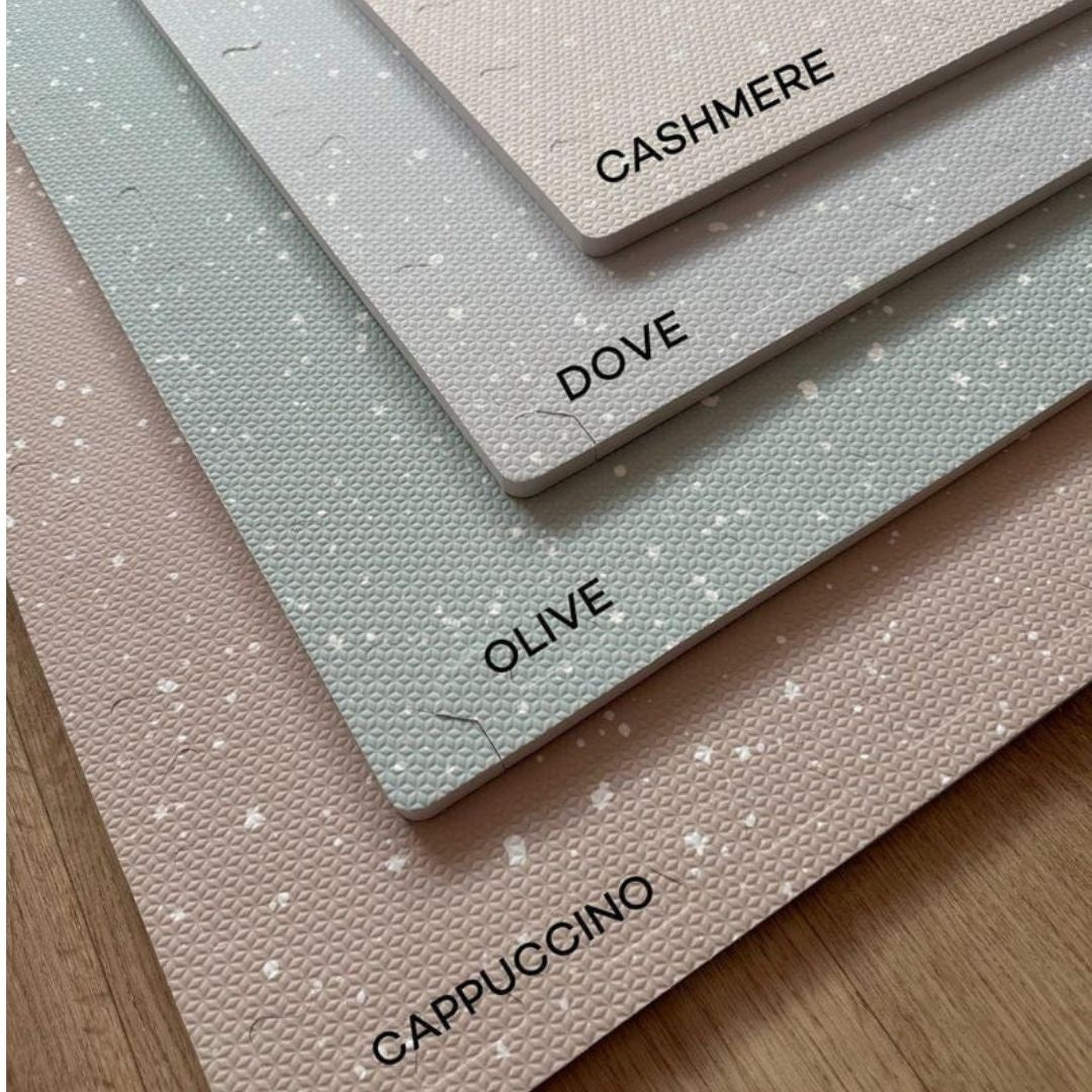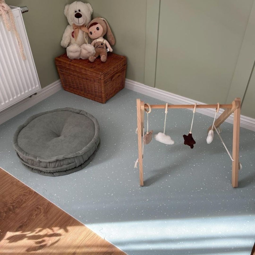 De matte groentint past moeiteloos in zowel lichte, minimalistische kamers als warmere, natuurlijke interieurs. Het EVA-schuim dempt geluiden en vangt bewegingen op, waardoor spelen en liggen zacht en ontspannen aanvoelt. Ideaal voor rustige ochtenden, speeluurtjes of knusse momenten samen.