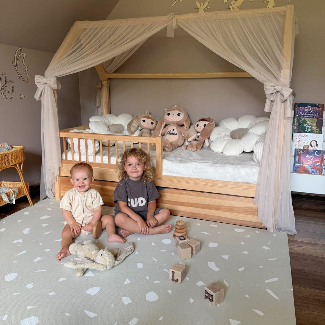 De zachte, verende structuur ondersteunt elke nieuwe beweging — van omrollen en kruipen tot de eerste stapjes. Zo krijgt je baby de ruimte om motoriek, balans en zelfvertrouwen op een natuurlijke manier te ontwikkelen.