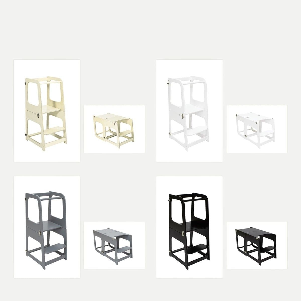 2-in-1 functionaliteit: eenvoudig te veranderen van keukentoren naar tafel en stoel.