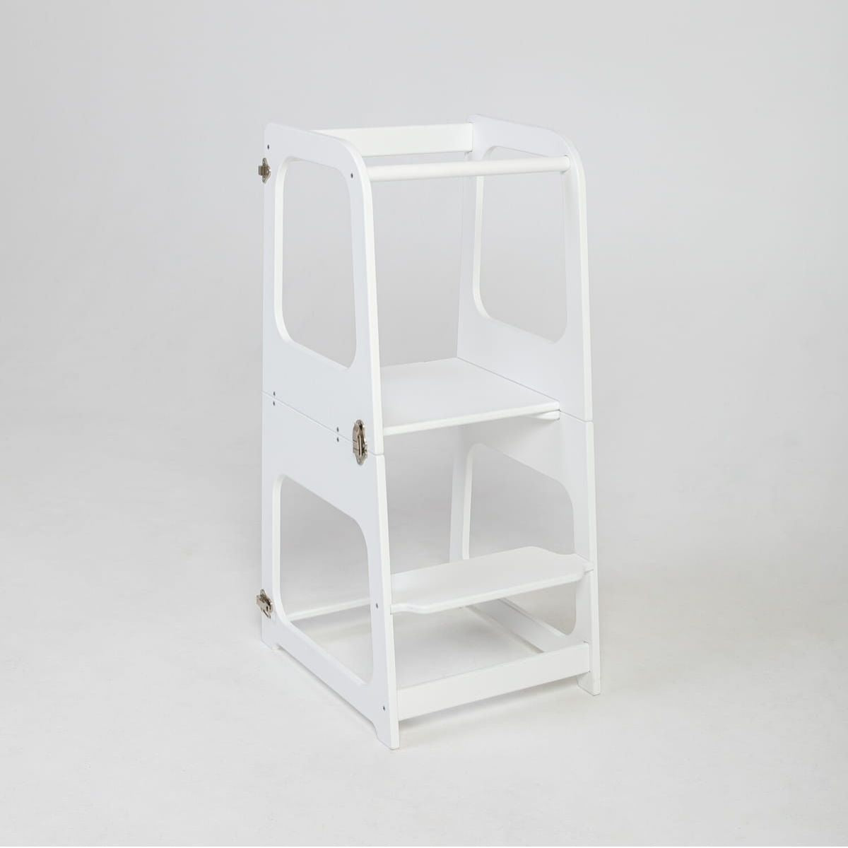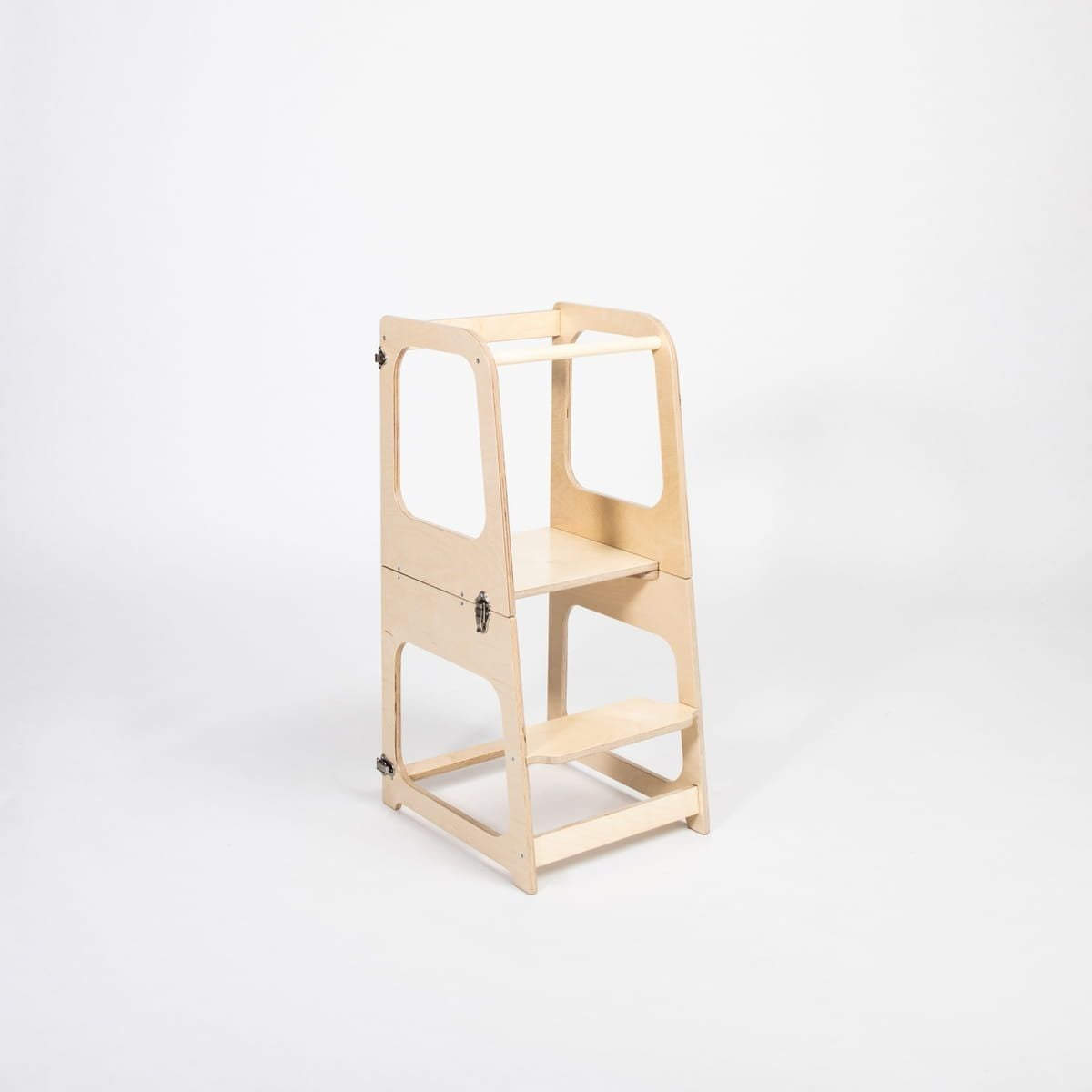 Handgemaakt in Letland van hoogwaardig Baltisch berkenmultiplex, combineert deze keukentoren duurzaamheid met elegantie. De afmetingen zijn 90 centimeter hoog, 40 centimeter breed en 44 centimeter diep — perfect voor jonge ontdekkers van 1 tot 6 jaar. De treden zijn verstelbaar op 22 en 44 centimeter hoogte, telkens met een aanpassing van 5 centimeter, zodat de toren meegroeit met het kind. Elk detail, van de afgeronde randen tot de stabiele basis, is ontworpen met zorg en veiligheid in gedachten. De toren transformeert eenvoudig tot tafel en stoel, waardoor hij jarenlang gebruikt kan worden — van koken tot knutselen en terug.